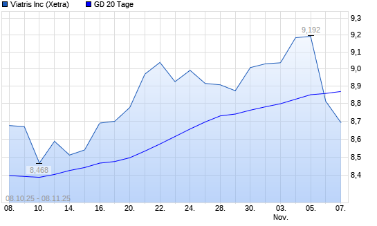 Mit dem Rücksetzer auf 8,67 EUR hat die Viatris-Aktie am 07.11.2025 die 20-Tage-Linie nach unten gekreuzt.