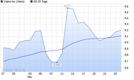 Mit dem Rücksetzer auf 9,08 EUR hat die Viatris-Aktie am 25.11.2025 die 20-Tage-Linie nach unten gekreuzt.