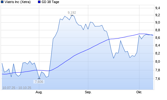 Mit dem Rücksetzer auf 8,58 EUR hat die Viatris-Aktie am 09.10.2025 die 38-Tage-Linie nach unten gekreuzt.
