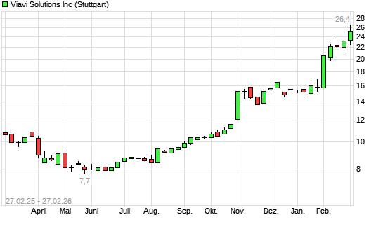 Mit dem Anstieg auf 25,40 EUR hat die Viavi Solutions-Aktie (ISIN US9255501051) am 26.02.2026 ein neues All-Time-High erreicht und damit den Kurs vom 25.02.2026 ...weiterlesen