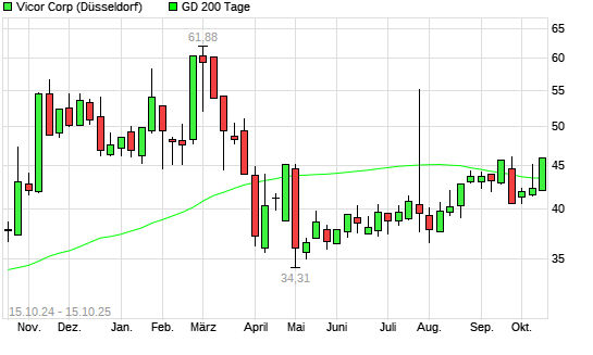 Mit dem Anstieg auf 44,52 EUR hat die Vicor-Aktie am 14.10.2025 die 200-Tage-Linie nach oben gekreuzt.