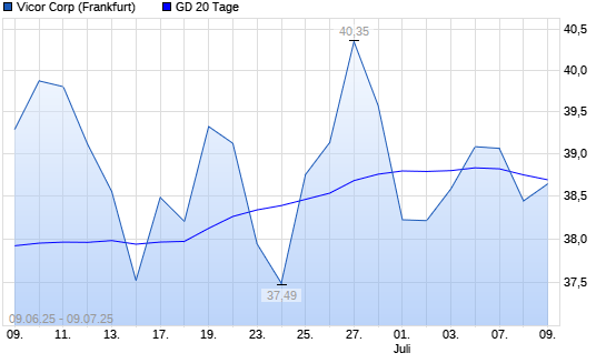 Mit dem Rücksetzer auf 38,44 EUR hat die Vicor-Aktie am 08.07.2025 die 20-Tage-Linie nach unten gekreuzt.