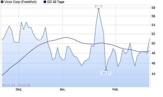 Mit dem Rücksetzer auf 47,91 EUR hat die Vicor-Aktie am 20.02.2025 die 38-Tage-Linie nach unten gekreuzt.