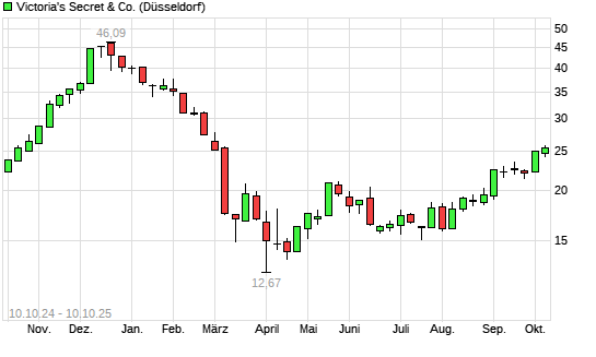 Mit dem Anstieg auf 25,83 EUR hat die Victoria's Secret & Co-Aktie (ISIN US9264001028) am 09.10.2025 ein neues 6-Monats-Hoch erreicht und damit den Kurs vom 06.10.2025 eingestellt.