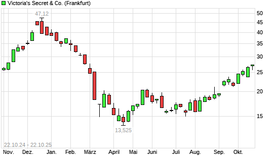 Mit dem Anstieg auf 27,40 EUR hat die Victoria's Secret & Co-Aktie (ISIN US9264001028) am 21.10.2025 ein neues 6-Monats-Hoch erreicht und damit den Kurs vom 16.10.2025 eingestellt.Die Victoria's ...weiterlesen