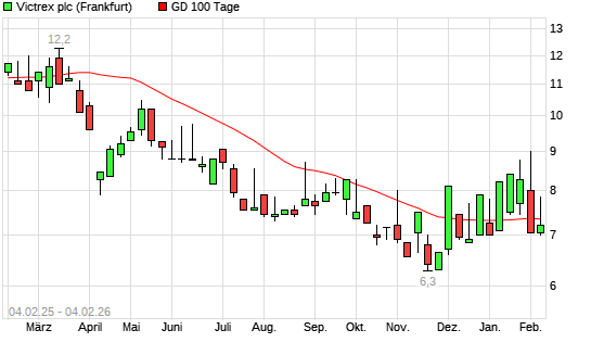 Mit dem Anstieg auf 7,75 EUR hat die Victrex-Aktie am 03.02.2026 die 100-Tage-Linie nach oben gekreuzt.