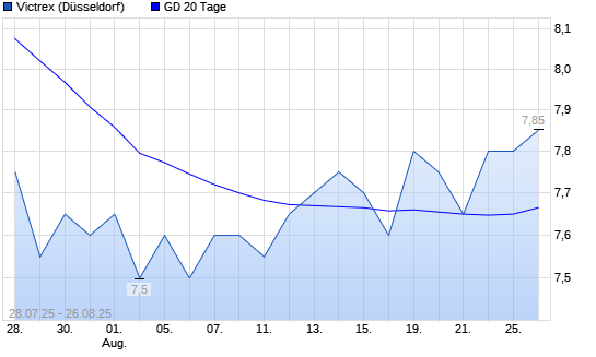 Mit dem Anstieg auf 7,65 EUR hat die Victrex-Aktie am 25.08.2025 die 20-Tage-Linie nach oben gekreuzt.