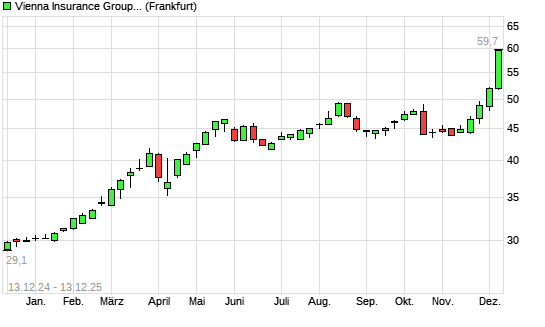 Mit dem Anstieg auf 59,70 EUR hat die Vienna Insurance-Aktie (ISIN AT0000908504) am 12.12.2025 ein neues All-Time-High erreicht und damit den Kurs vom 19.02.2008 eingestellt.