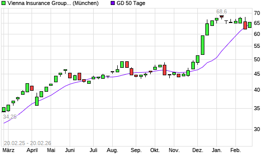 Mit dem Rücksetzer auf 65,30 EUR hat die Vienna Insurance-Aktie am 19.02.2026 die 50-Tage-Linie nach unten gekreuzt.