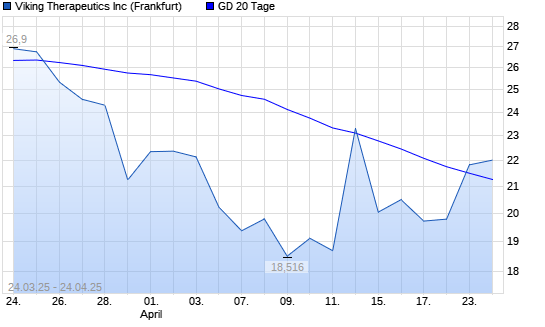 Mit dem Anstieg auf 21,82 EUR hat die Viking Therapeutics-Aktie am 23.04.2025 die 20-Tage-Linie nach oben gekreuzt.