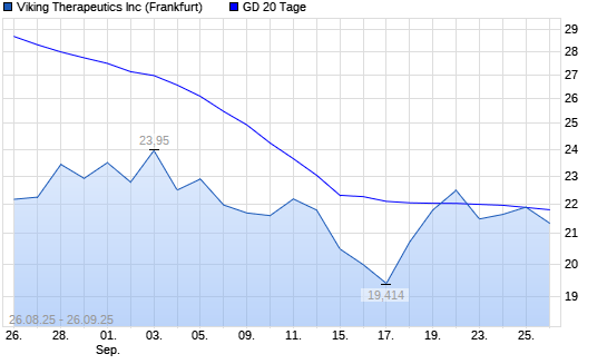 Mit dem Anstieg auf 21,90 EUR hat die Viking Therapeutics-Aktie am 25.09.2025 die 20-Tage-Linie nach oben gekreuzt.