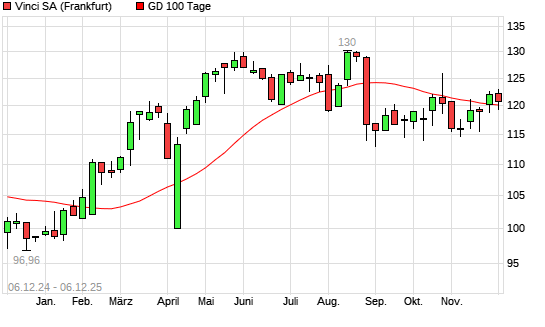 Mit dem Anstieg auf 120,70 EUR hat die Vinci-Aktie am 05.12.2025 die 100-Tage-Linie nach oben gekreuzt.