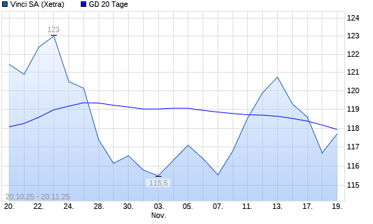 Mit dem Anstieg auf 118,15 EUR hat die Vinci-Aktie am 19.11.2025 die 20-Tage-Linie nach oben gekreuzt.