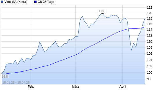 Mit dem Anstieg auf 116,10 EUR hat die Vinci-Aktie am 14.04.2025 die 38-Tage-Linie nach oben gekreuzt.
