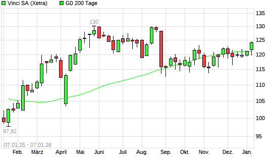 Mit dem Rücksetzer auf 120,65 EUR hat die Vinci-Aktie am 06.01.2026 die 200-Tage-Linie nach unten gekreuzt.