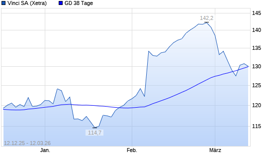 Mit dem Rücksetzer auf 129,45 EUR hat die Vinci-Aktie am 11.03.2026 die 38-Tage-Linie nach unten gekreuzt.