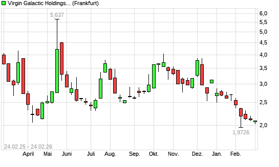 Mit dem Rücksetzer auf 2,07 EUR hat die Virgin Galactic Holdings-Aktie (ISIN US92766K4031) am 23.02.2026 ein neues All-Time-Low erreicht und damit den Kurs vom 09.04.2025 eingestellt.