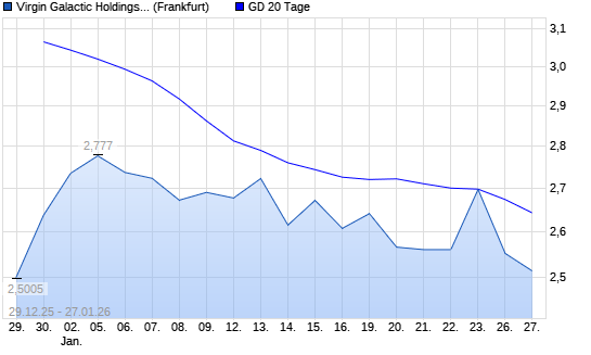 Mit dem Rücksetzer auf 2,55 EUR hat die Virgin Galactic Holdings-Aktie am 26.01.2026 die 20-Tage-Linie nach unten gekreuzt.