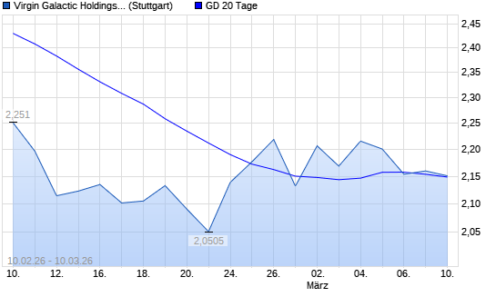 Mit dem Rücksetzer auf 2,10 EUR hat die Virgin Galactic Holdings-Aktie am 09.03.2026 die 20-Tage-Linie nach unten gekreuzt.