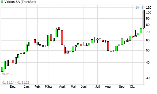 Mit dem Anstieg auf 104,90 EUR hat die Viridien-Aktie (ISIN FR001400PVN6) am 31.10.2025 ein neues 3-Jahres-Hoch erreicht und damit den Kurs vom 03.03.2023 eingestellt.