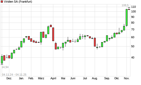 Mit dem Anstieg auf 107,50 EUR hat die Viridien-Aktie (ISIN FR001400PVN6) am 03.11.2025 ein neues 3-Jahres-Hoch erreicht und damit den Kurs vom 31.10.2025 eingestellt.