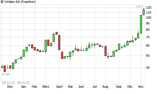 Mit dem Anstieg auf 114,80 EUR hat die Viridien-Aktie (ISIN FR001400PVN6) am 07.11.2025 ein neues 3-Jahres-Hoch erreicht und damit den Kurs vom 05.11.2025 eingestellt.