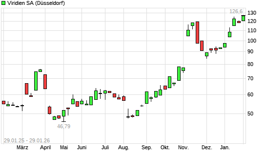Mit dem Anstieg auf 126,30 EUR hat die Viridien-Aktie (ISIN FR001400PVN6) am 28.01.2026 ein neues 3-Jahres-Hoch erreicht und damit den Kurs vom 13.01.2026 eingestellt.