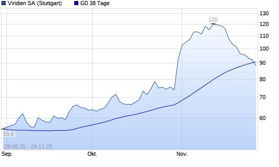 Mit dem Rücksetzer auf 87,30 EUR hat die Viridien-Aktie am 28.11.2025 die 38-Tage-Linie nach unten gekreuzt.