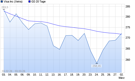 Mit dem Anstieg auf 275,00 EUR hat die Visa-Aktie am 02.03.2026 die 20-Tage-Linie nach oben gekreuzt.