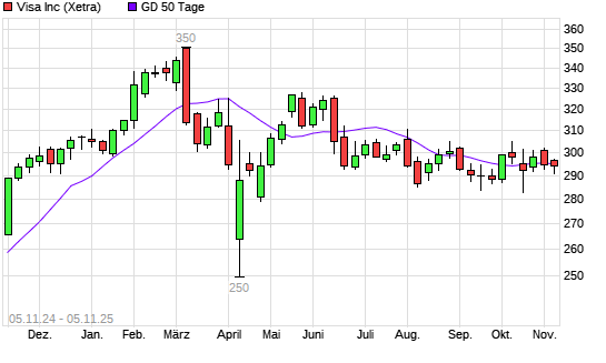 Mit dem Anstieg auf 295,45 EUR hat die Visa-Aktie am 04.11.2025 die 50-Tage-Linie nach oben gekreuzt.