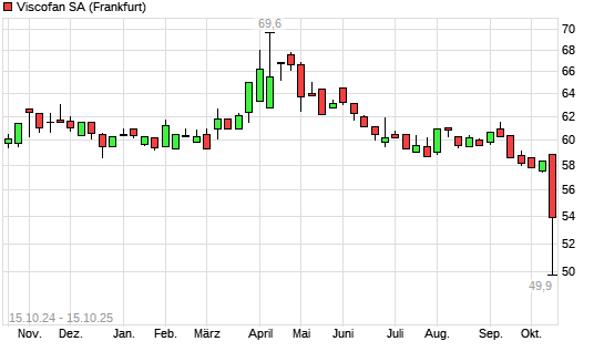 Mit dem Rücksetzer auf 51,60 EUR hat die Viscofan-Aktie (ISIN ES0184262212) am 14.10.2025 ein neues 3-Jahres-Tief erreicht und damit den Kurs vom 01.03.2024 eingestellt.