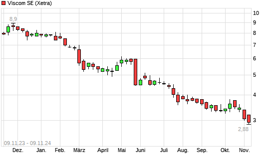 Mit dem Rücksetzer auf 2,86 EUR hat die Viscom-Aktie (ISIN DE0007846867) am 08.11.2024 ein neues 10-Jahres-Tief erreicht und damit den Kurs vom 06.11.2024 eingestellt.