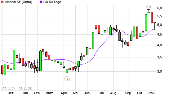 Mit dem Anstieg auf 4,80 EUR hat die Viscom-Aktie am 06.11.2025 die 50-Tage-Linie nach oben gekreuzt.