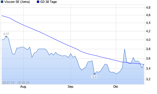 Mit dem Rücksetzer auf 3,34 EUR hat die Viscom-Aktie am 17.10.2024 die 38-Tage-Linie nach unten gekreuzt.