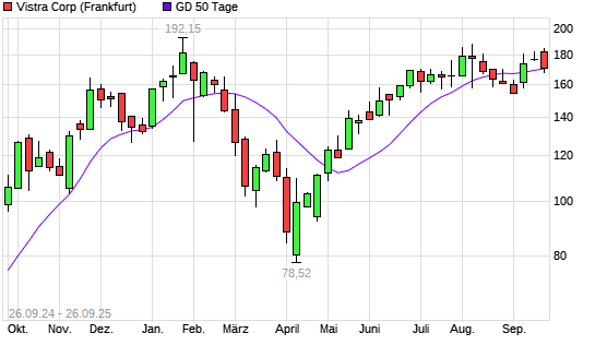 Mit dem Rücksetzer auf 167,40 EUR hat die Vistra Energy-Aktie am 25.09.2025 die 50-Tage-Linie nach unten gekreuzt.