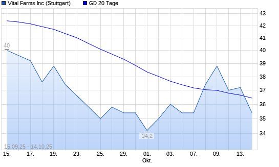 Mit dem Rücksetzer auf 36,40 EUR hat die Vital Farms-Aktie am 13.10.2025 die 20-Tage-Linie nach unten gekreuzt.