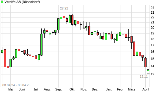Mit dem Rücksetzer auf 13,61 EUR hat die Vitrolife-Aktie (ISIN SE0011205202) am 07.04.2025 ein neues 6-Monats-Tief erreicht und damit den Kurs vom 04.04.2025 eingestellt.