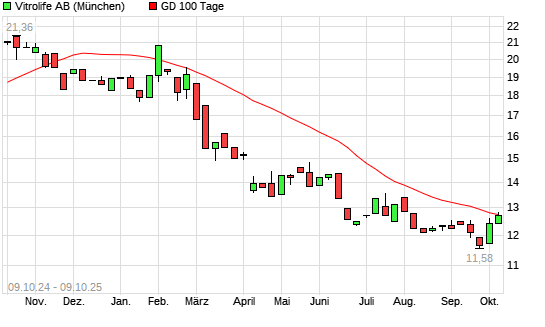 Mit dem Anstieg auf 12,49 EUR hat die Vitrolife-Aktie am 08.10.2025 die 100-Tage-Linie nach oben gekreuzt.
