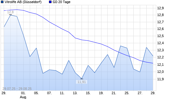 Mit dem Anstieg auf 12,19 EUR hat die Vitrolife-Aktie am 28.08.2025 die 20-Tage-Linie nach oben gekreuzt.
