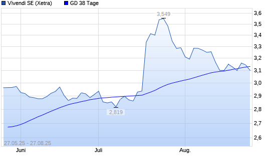 Mit dem Rücksetzer auf 3,09 EUR hat die Vivendi-Aktie am 26.08.2025 die 38-Tage-Linie nach unten gekreuzt.