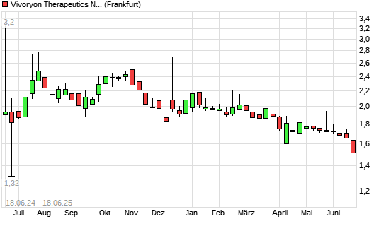 Mit dem Rücksetzer auf 1,62 EUR hat die Vivoryon Therapeutics-Aktie (ISIN NL00150002Q7) am 17.06.2025 ein neues 6-Monats-Tief erreicht und damit den Kurs vom 16.06.2025 eingestellt.