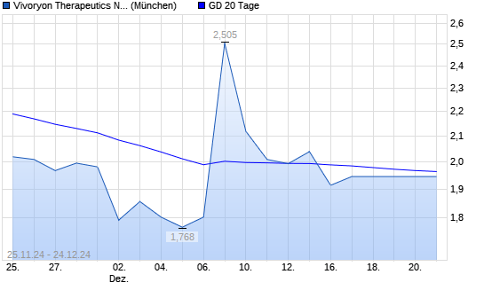 Mit dem Anstieg auf 1,97 EUR hat die Vivoryon Therapeutics-Aktie am 23.12.2024 die 20-Tage-Linie nach oben gekreuzt.