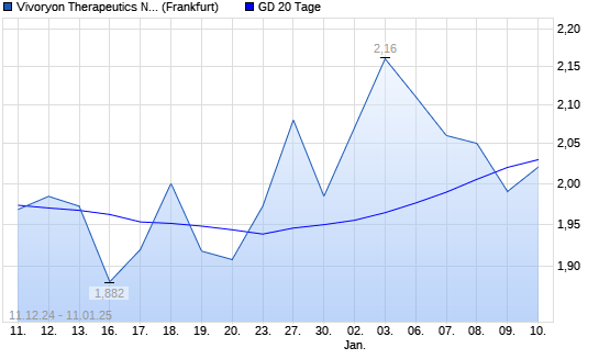 Mit dem Anstieg auf 2,02 EUR hat die Vivoryon Therapeutics-Aktie am 10.01.2025 die 20-Tage-Linie nach oben gekreuzt.