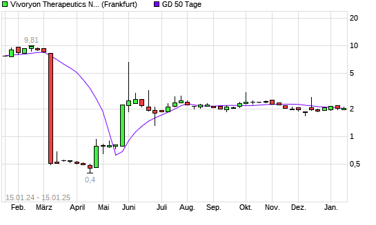 Mit dem Anstieg auf 2,10 EUR hat die Vivoryon Therapeutics-Aktie am 14.01.2025 die 50-Tage-Linie nach oben gekreuzt.