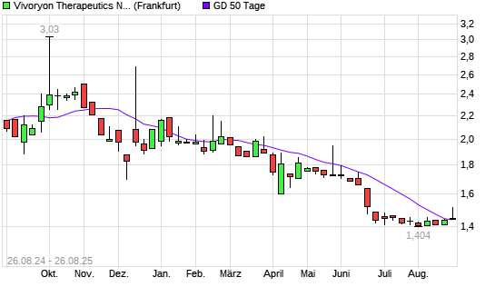 Mit dem Anstieg auf 1,47 EUR hat die Vivoryon Therapeutics-Aktie am 25.08.2025 die 50-Tage-Linie nach oben gekreuzt.