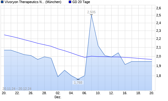 Mit dem Rücksetzer auf 1,92 EUR hat die Vivoryon Therapeutics-Aktie am 19.12.2024 die 20-Tage-Linie nach unten gekreuzt.
