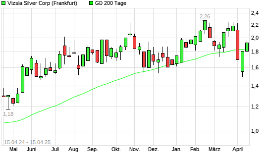 Mit dem Anstieg auf 1,90 EUR hat die Vizsla Silver-Aktie am 14.04.2025 die 200-Tage-Linie nach oben gekreuzt.