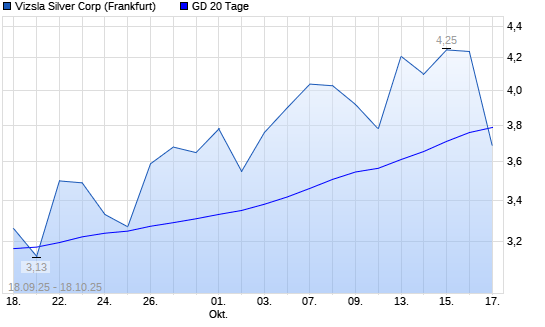 Mit dem Rücksetzer auf 3,69 EUR hat die Vizsla Silver-Aktie am 17.10.2025 die 20-Tage-Linie nach unten gekreuzt.