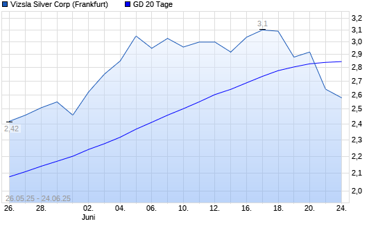 Mit dem Rücksetzer auf 2,64 EUR hat die Vizsla Silver-Aktie am 23.06.2025 die 20-Tage-Linie nach unten gekreuzt.Die Vizsla Silver-Aktie befindet sich seit dem 06.05.2025 im langfristigen ...weiterlesen