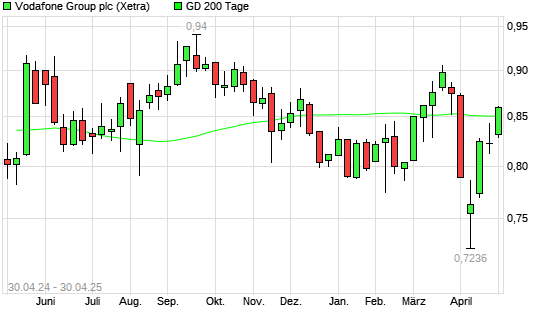 Mit dem Anstieg auf 0,85 EUR hat die Vodafone Group-Aktie am 29.04.2025 die 200-Tage-Linie nach oben gekreuzt.